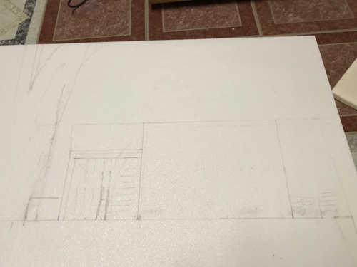 En primer lugar haremos un dibujo con lo que en principio hemos pensado hacer, si es posible con las medidas más aproximadas posibles. En nuestro caso está planteado para un tamaño de 140 cm de anchura por 150 cm de profundidad. La base del diorama está formada por dos planchas de poliespán de 140 X 75 cm cada una y 4 cm de grosor.