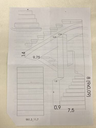 Planteamos las escaleras y hacemos un dibujo con las medidas para calcular el número y el grosor de los peldaños.